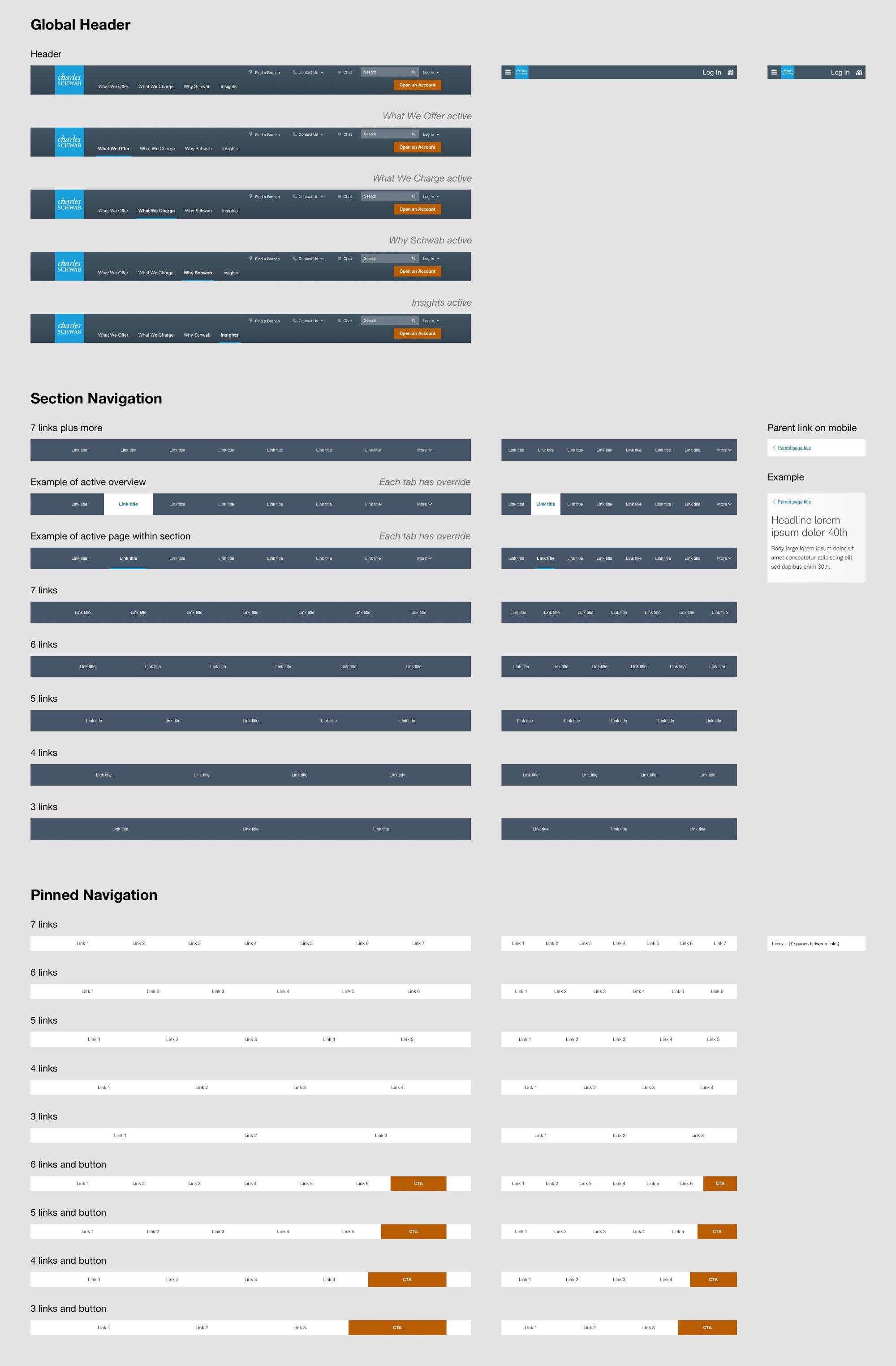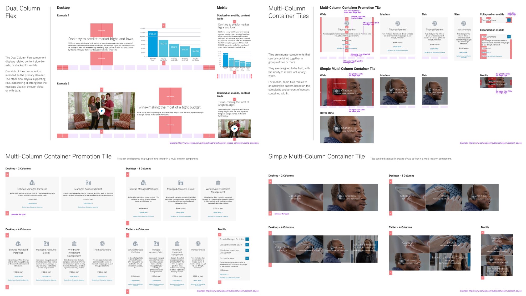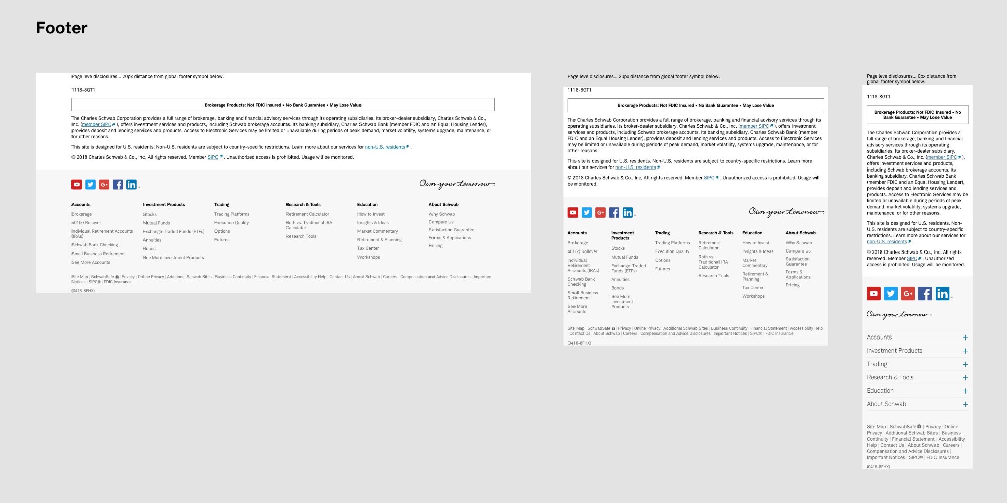 We partnered with Schwab's engineering team to make sure every component had a coded counterpart and took a conscientious approach to reuse components, only enhancing or introducing new components when necessary.