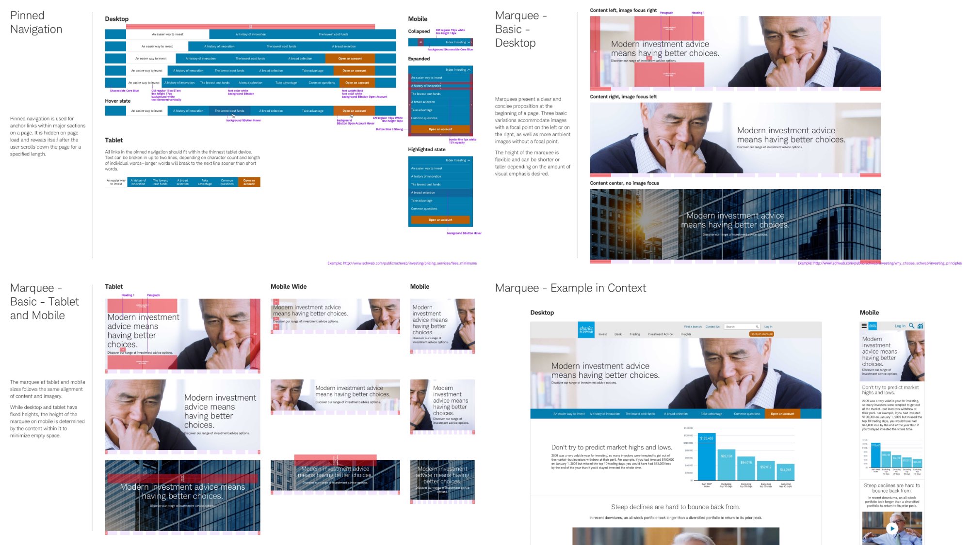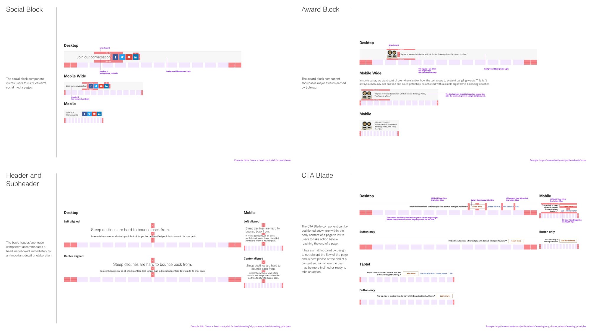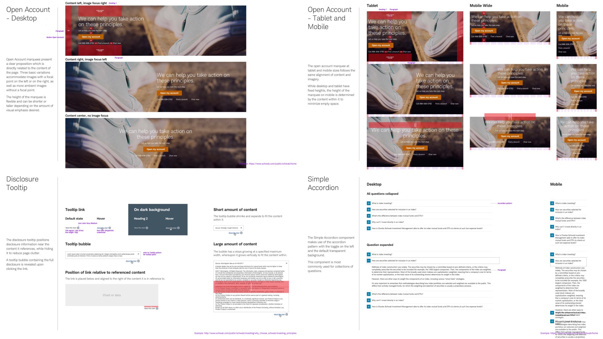 We partnered with Schwab's engineering team to make sure every component had a coded counterpart and took a conscientious approach to reuse components, only enhancing or introducing new components when necessary.