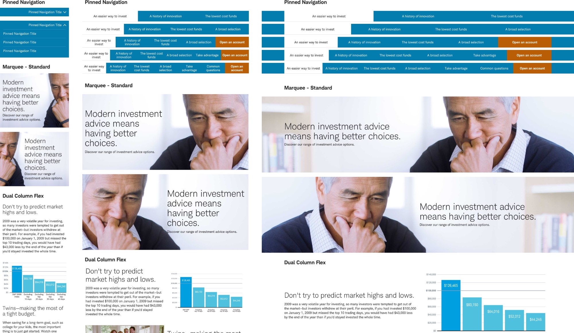 The system served an exponential curve of efficiency with each redesign section as more and more components could be repurposed to rapidly construct new pages and templates. Handoff to development also grew faster as specs were only required for new or enhanced components.